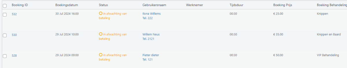 Online Boekingen